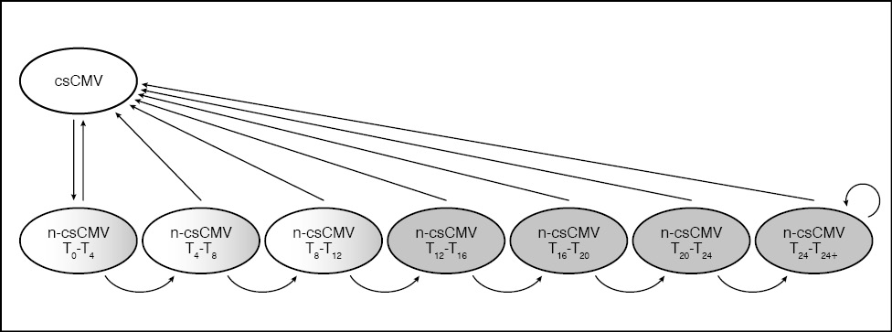 Figura 2. Transizioni tra gli stati di salute cs-CMV e n-csCMV