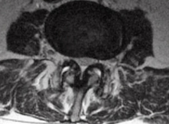 Figure 2. Axial magnetic resonance imaging (MRI) demonstrating severe central spinal stenosis.